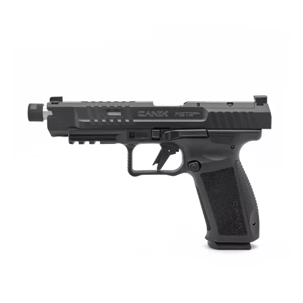 The beavertail, whose ergonomics has been increased with the renewed frame design of the new METE series, allows you to grip the gun more comfortably, while the trigger guard allows your support hand to grip it very well. One of the features brought by the new design of the pistol is the “Fit and Lock” feature that makes it easier to lock the holster. Therefore, the new METE series can be used more effectively with appropriately designed holster. Another noticeable feature of the new frame design is that it has a completely modular frame design. In addition, the pistol can be easily disassemble without the need for any extra materials other than the Canik punch that comes with your pistol. This practical and useful feature is provided by the new design of the 36 mm double-sided slide holder. The new frame design with a self-flared magwell allows the shooter to change the magazine faster split time makes a difference. The legendary Canik trigger is available in a polymer with 90⁰ break. Like all METE series pistols, the METE SFx PRO is equipped with an angled sight that makes it easy to racking your pistol with one hand in an emergency situation. This sight also has a design that can be used with optics. New optics-ready slide accepts all micro-optics especially Trijicon RMRcc. METE SFx PRO uses a sight set consisting of a tritium front sight and blacked out rear sight has a 146 mm (5.74 inch) threaded barrel with thread protector cap.