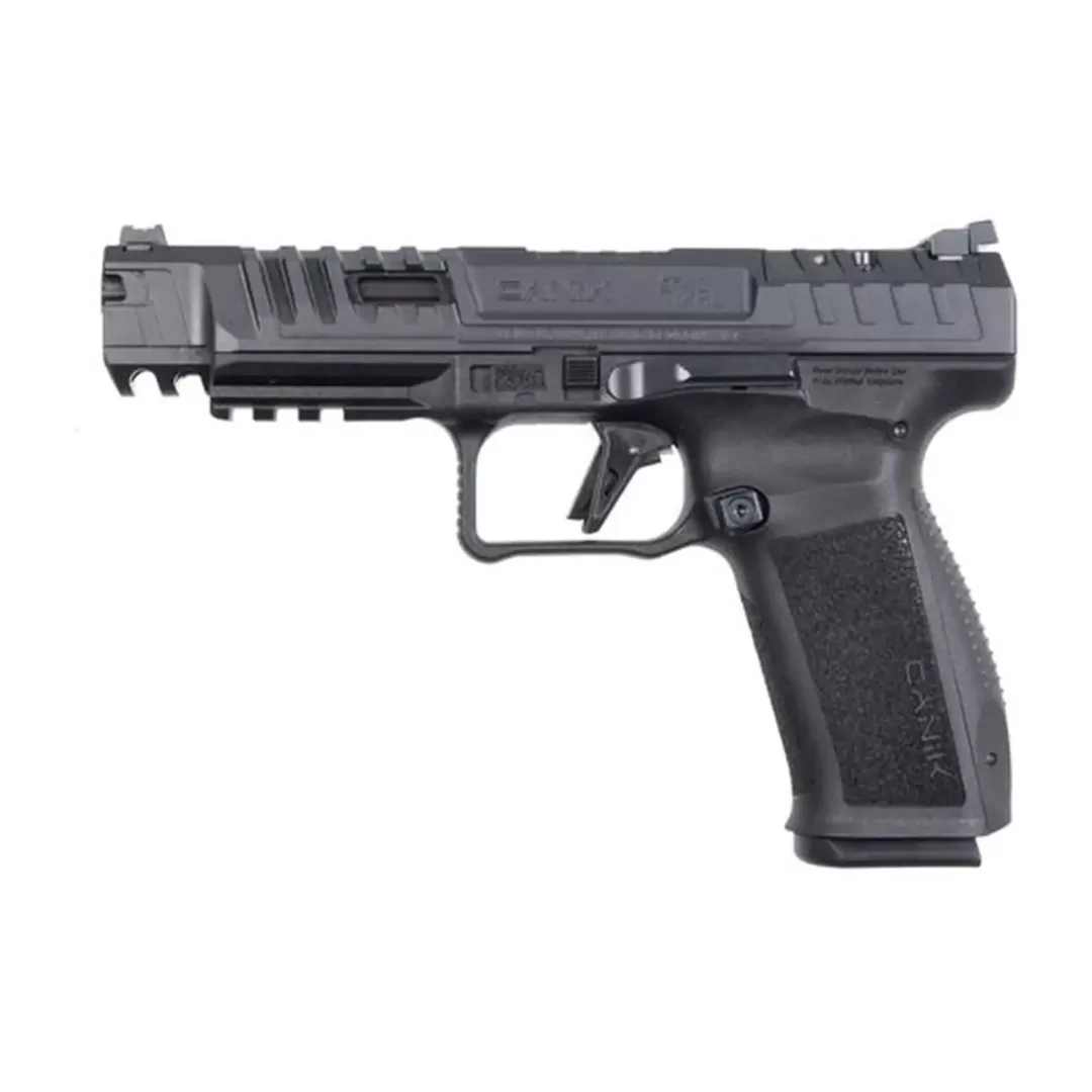 No other name could express the design as clearly, a superior model that can challenge all other pistols has now entered the stage. With features specifically designed to edge out the competitors like an improved beaver tail, aggressive front slide serrations, deeper trigger guard angle, a new holster fit-and-lock (HFL) feature, and the new self-flared magwell frame design. With the new frame design equipped with adjustable rear sight and a fibre optic front sight set, the manoeuvrability and target acquisition of the pistol is drastically increased. The SFX RIVAL®️features a modular frame which allows for easy disassembly of the firearm. With this design, the user can disassemble his out of the box pistol down to its smallest parts and then reassemble it using just the Canik punch tool. Canik®️ continues to use the world’s most advanced technology in trigger design to develop the SFx RIVAL®️’s diamond-cut, 90° angle, lightened aluminium trigger which along with shortened present and reset distance increases speed and accuracy. In addition to all these technical improvements, aesthetic concerns were also taken into account in the design of RIVAL: With a one of a kind coating colour named Canik Rival Grey, created by Cerakote®️ exclusively for Canik®️ applied to the frame and slide and H122 gold on the trigger, magazine release catch, magazine base plate, mag-well, and slide stop lever, this firearm is sure to be a show stopper on any range.