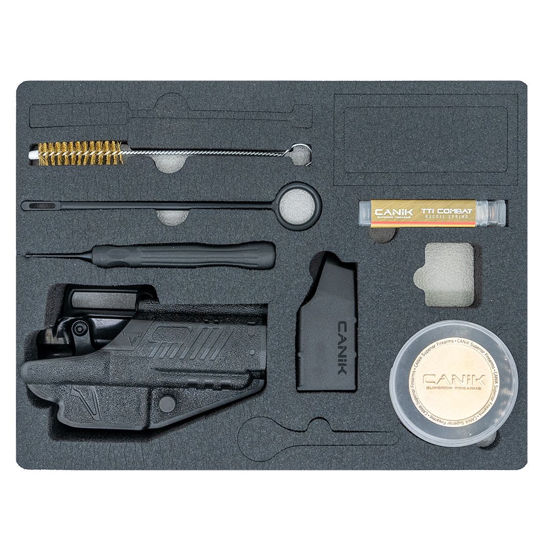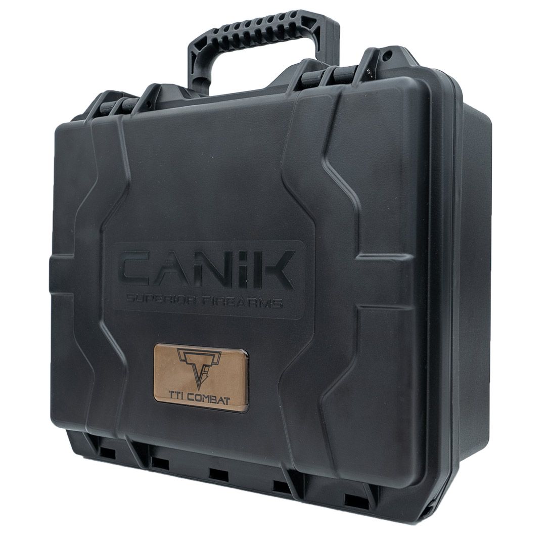 Taran Tactical Innovations and CANiK are proud to partner to bring you the CANiK TTI Combat. Built on a completely new polymer frame designed by Taran Butler, the TTI Combat brings a one-of-a-kind performance package to the CANiK lineup. This sleek design is built by the best, for the best, and includes all the features a world champion like Taran Butler needs for success. Both internally and externally, the TTI Combat delivers uniquely aggressive grip texturing, a ported and fluted barrel, the first CANiK compensator, a diamond cut, flat-faced, 90 degree break trigger, TTI +3 magazine base pads, a newly designed slide release, an optics cut that even allows for a low profile seating of the MECANIK line of optics as well as the Trijicon SRO ® and many others, a custom holster, and travel hard case. To finish off this collectable package, we’ve included a handsome collaboration coin to commemorate our lasting partnership. This partnership has created a truly superior firearm!