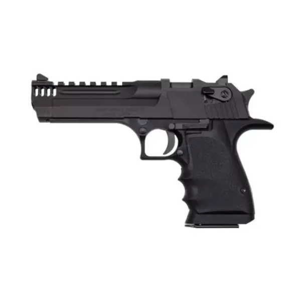The Mark XIX L5 in .50 AE is offered with an all 5-inch barrel length and features a hard coat anodized black aluminum frame, carbon steel slide and barrel, and Hogue® finger groove rubber grip. Overall length is 9.75”, height is 6.25” and the slide width is 1.25”. The light-weight Desert Eagle L5 models are New York State compliant.